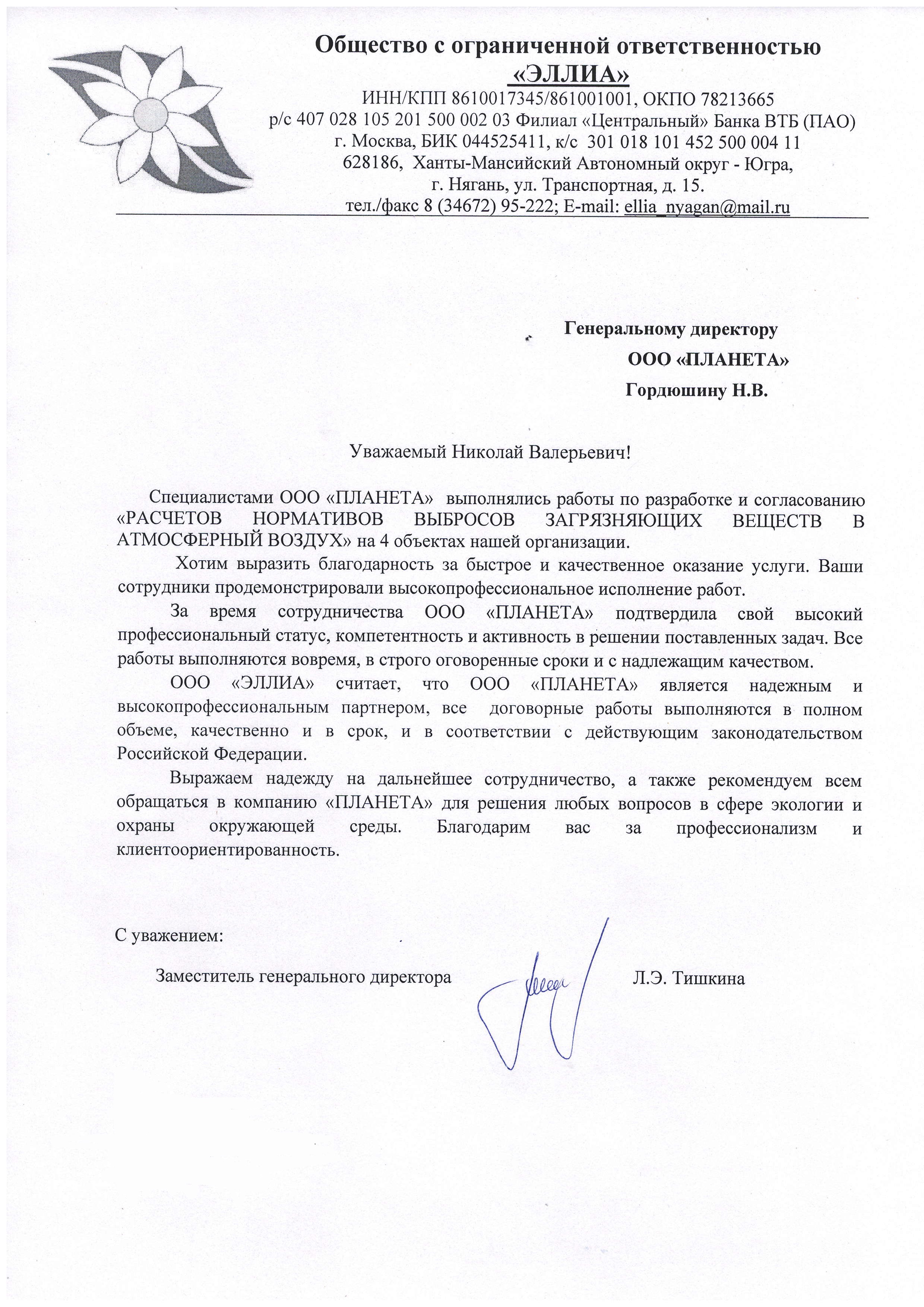 Отзыв от ООО "ЭЛЛИА" (инвентаризация источников выбросов)