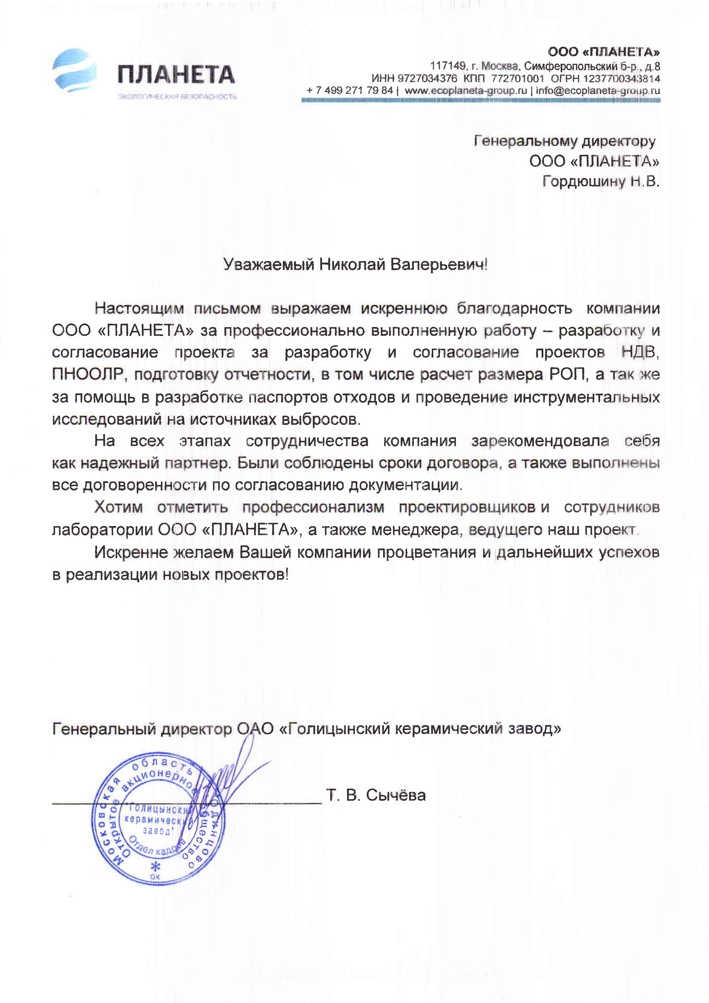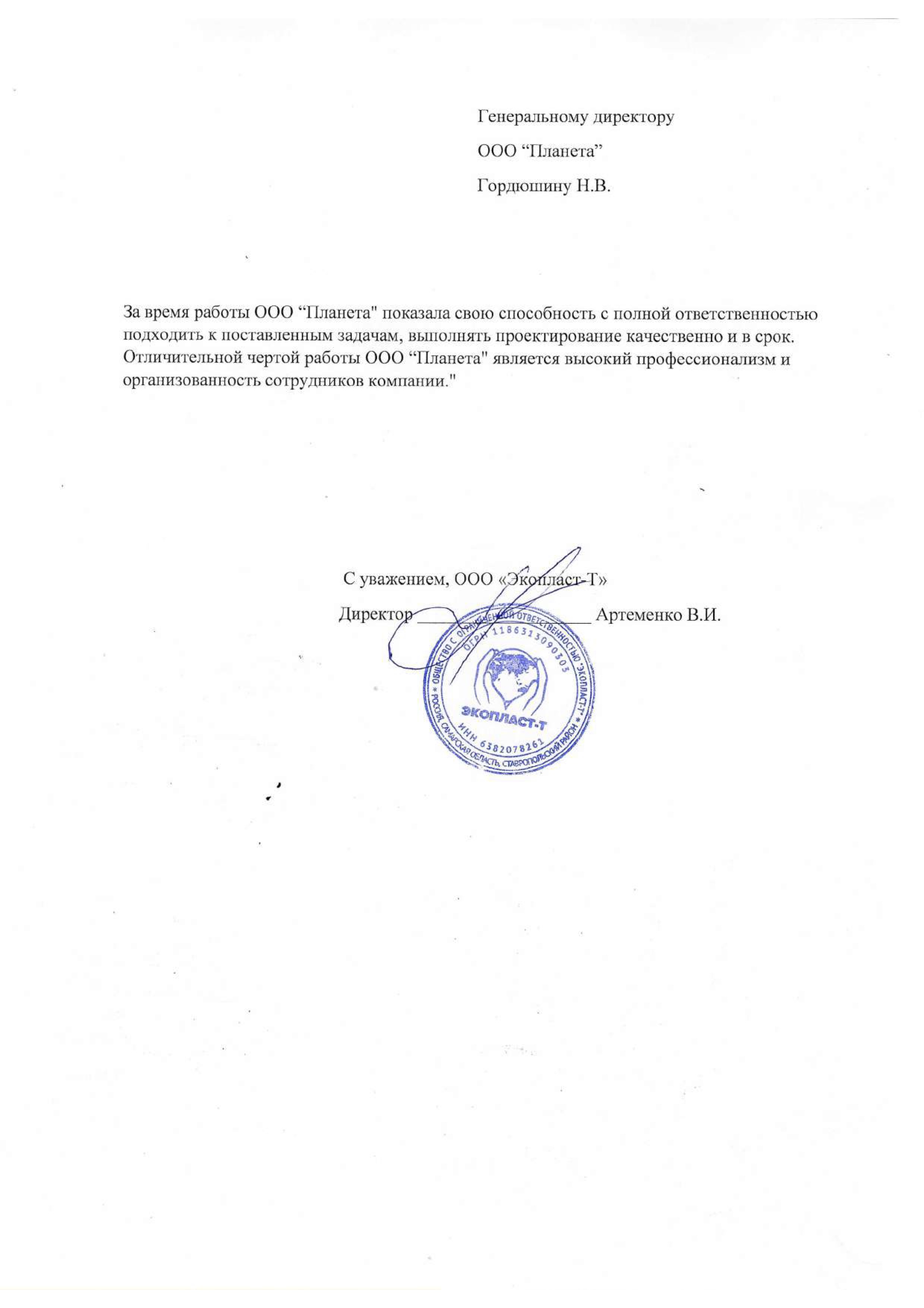 Отзыв от ООО "Экопласт-Т" (услуги экологического проектирования)